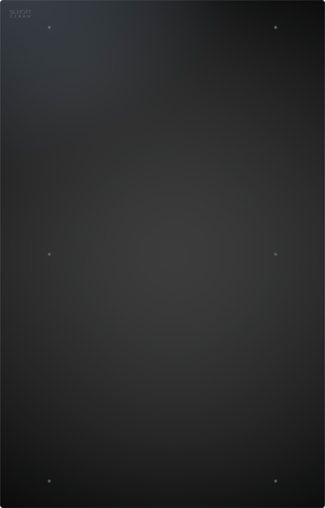 Particularly large surface induction cooking zones measuring 230 x 230 mm or 230 x 460 mm when the bridging function is activated.