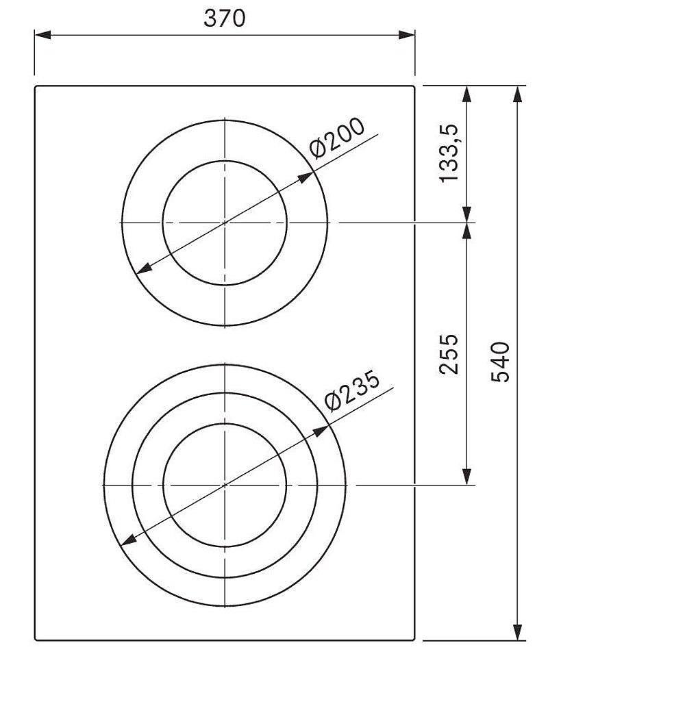 Front cooking zone dimensions Ø 120 / 180 / 235 mm