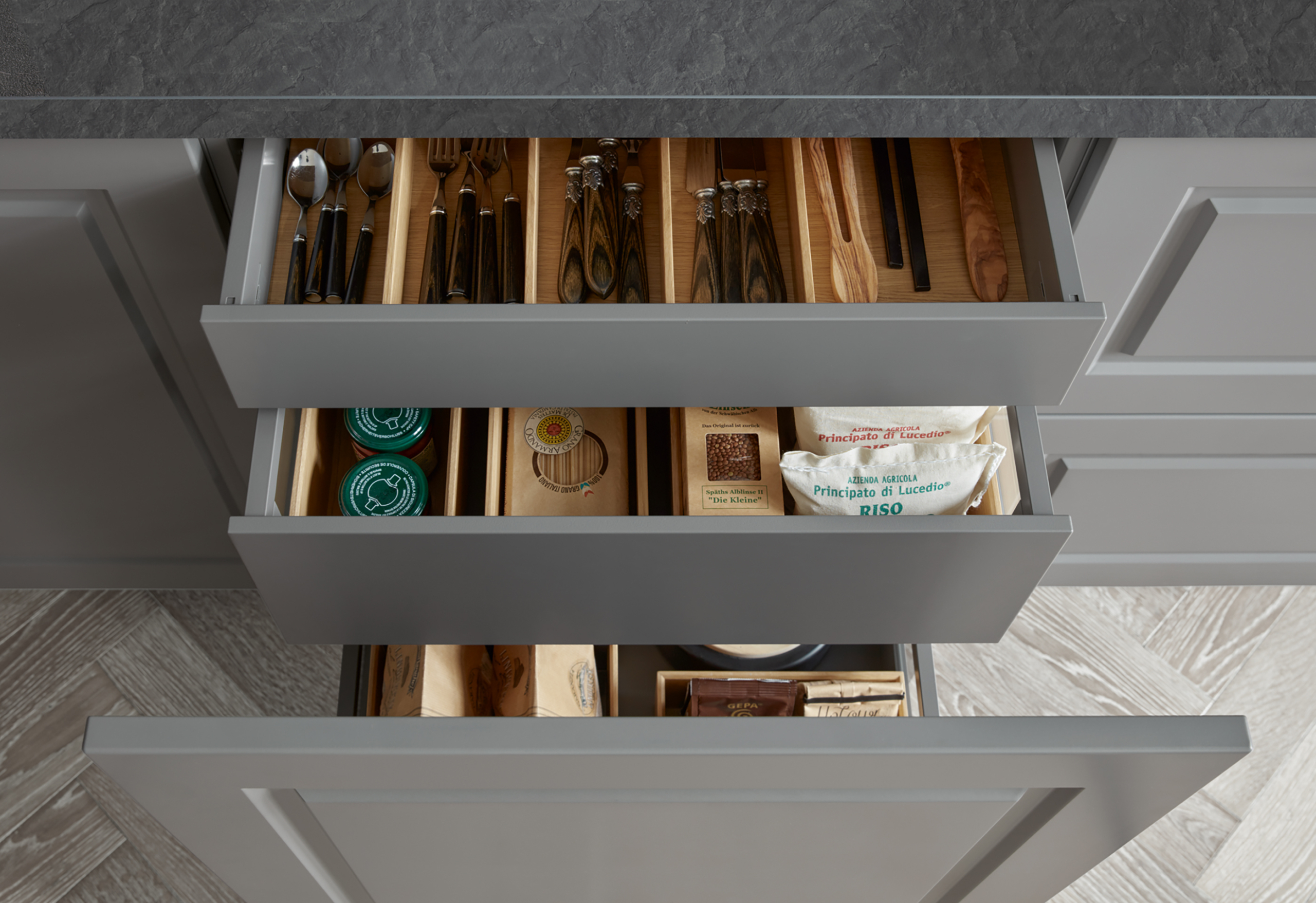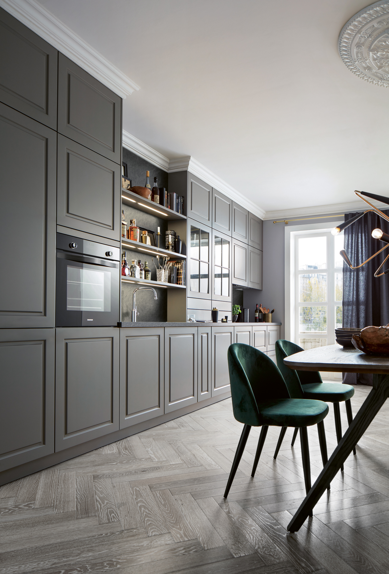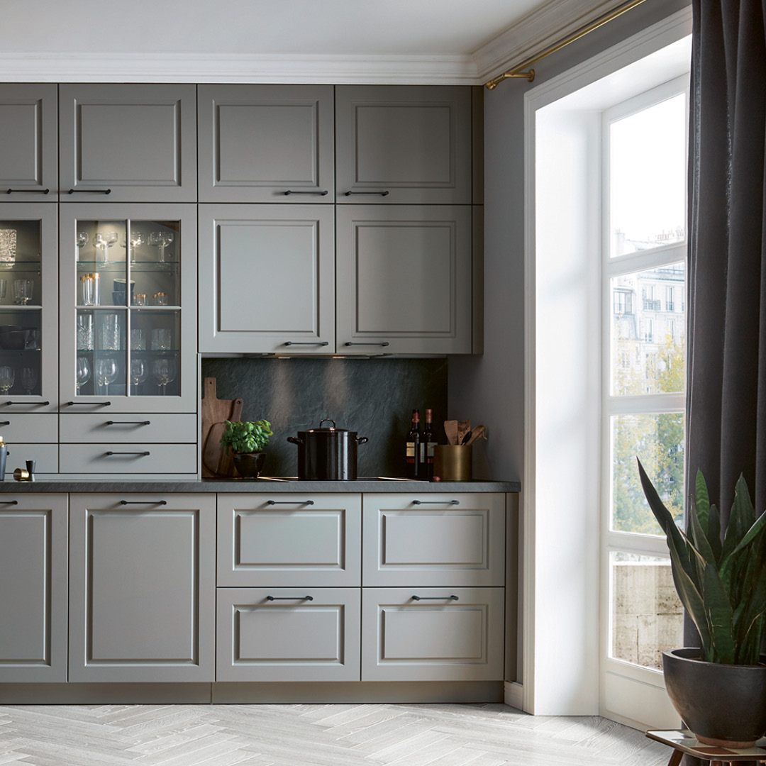 Schüller Classic Kitchen asortiman dolazi sa vratima od baršunastog mat laka i vratima od satenskog laka.