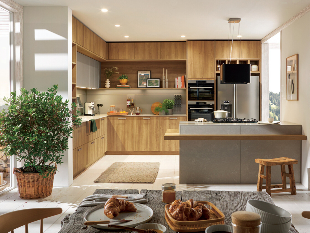 Schüller Bari stvara atmosferu udobnosti i sofisticiranosti. Kombinacija toplog drveta, čelika i savremene rasvete definiše ovaj premium nemački dizajn.