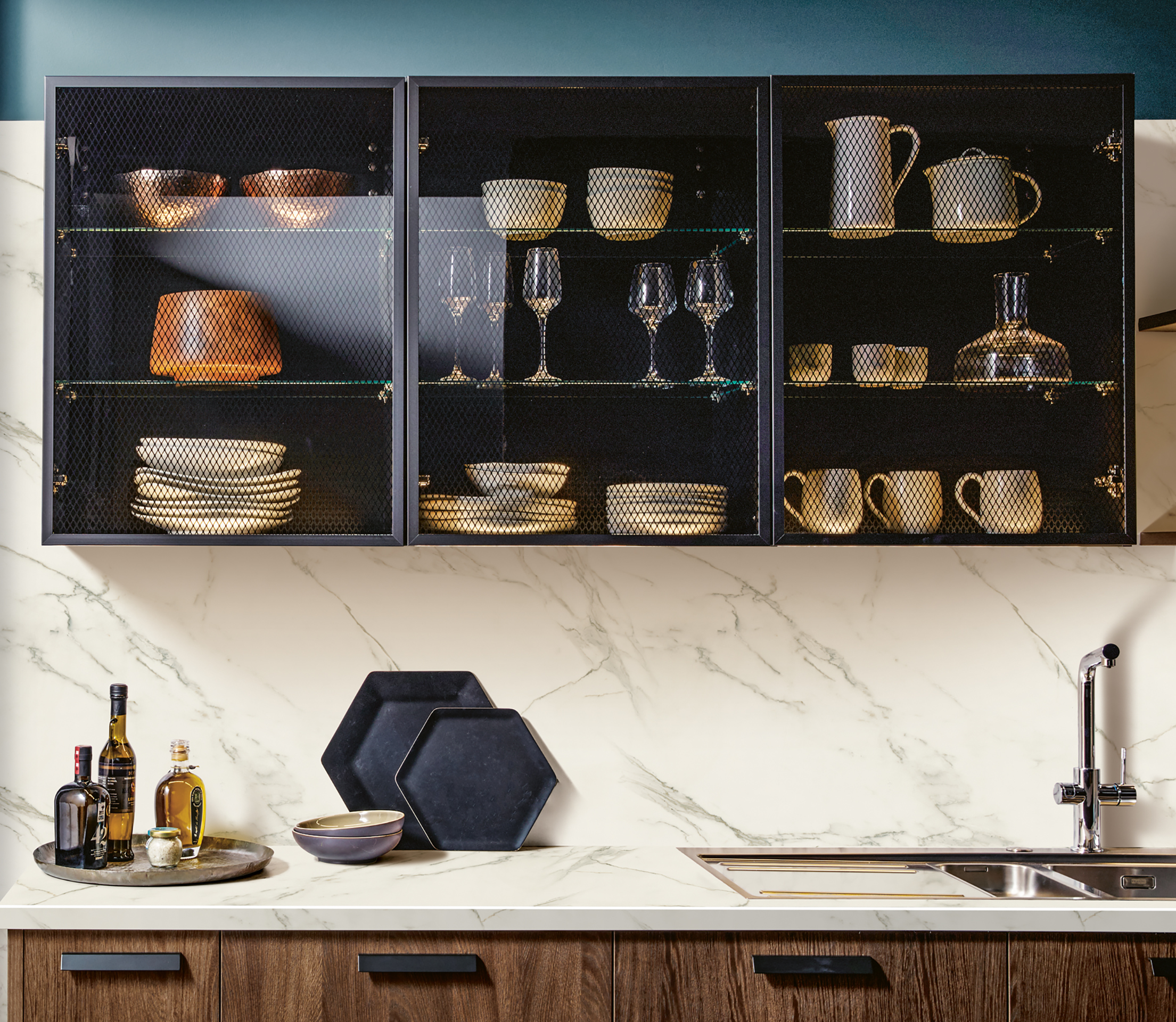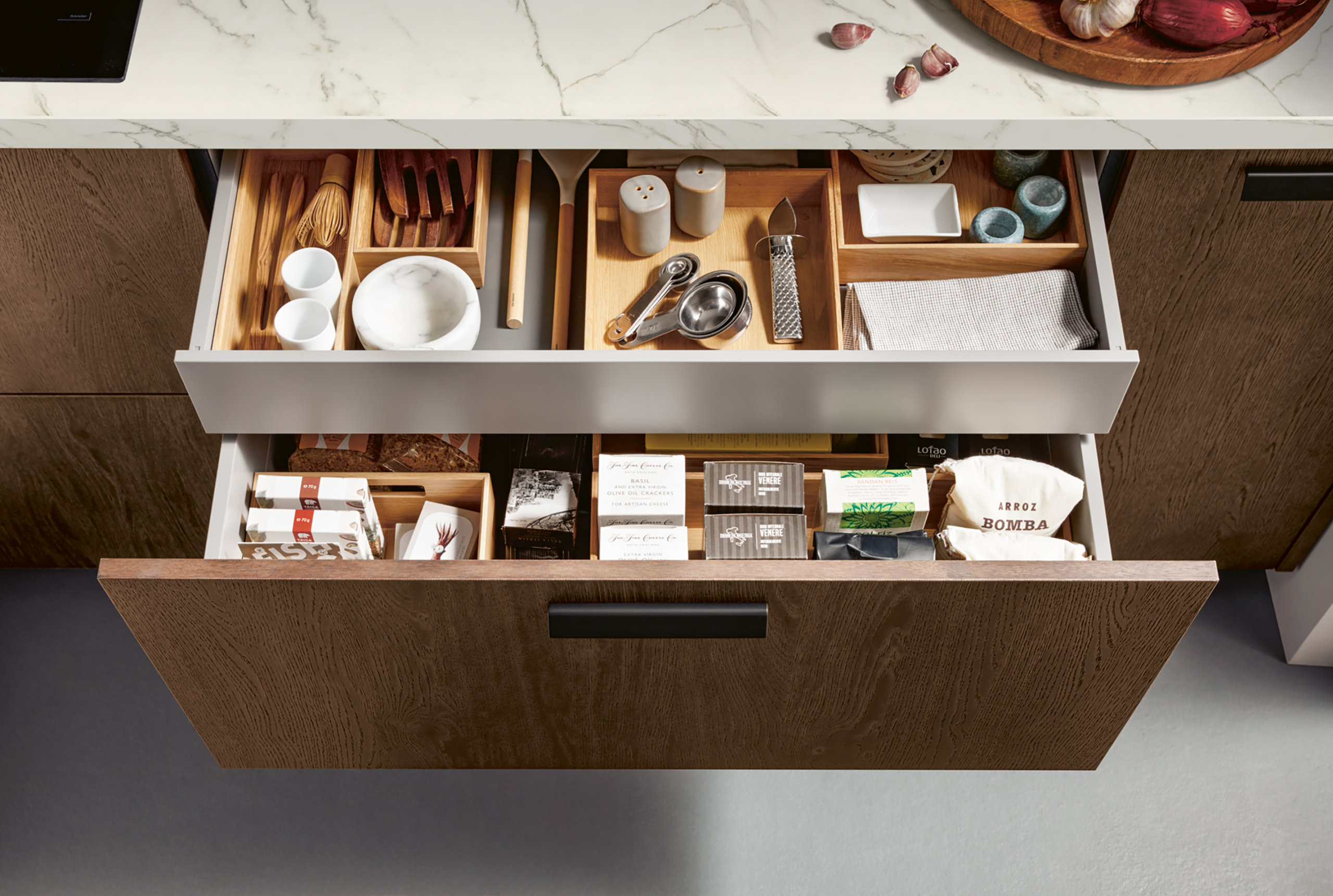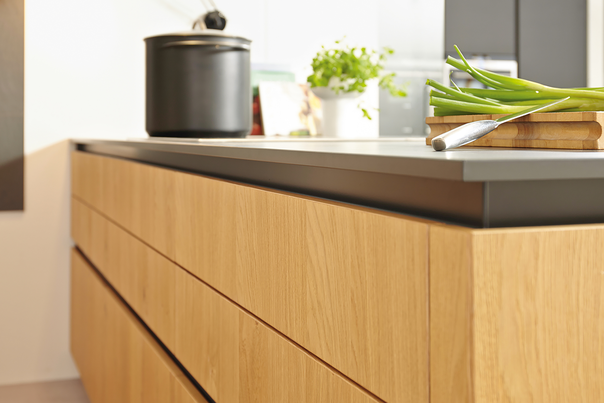 Kolekcija Schüller ROCCA ima drvene frontove – vrata obložena furnirom od brušenog hrasta.